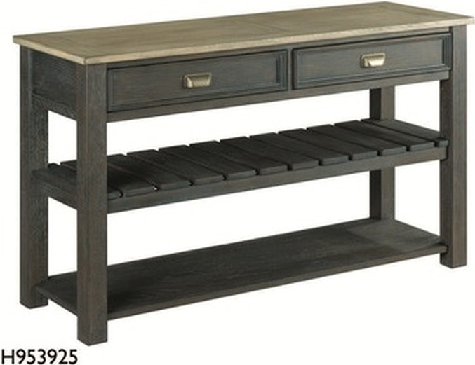 The Alexvale Lyle Creek Wood Console Table is crafted of rubberwood solids and oak veneers. Features a contrasting finish with its dark base and light tabletop and ample storage with its two drawers and spacious shelves.Read More