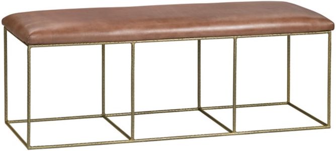 The Crestview Collection Bengal Manor Dimpled Iron and Leather Bench has a rustic, modern style that makes it the perfect accent piece for your bedroom, hallway or living room. The skinny, gold iron frame features dimples for decoration. The frame is complemented by the brown leather upholstered seat.Read More