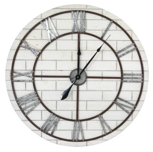 The Relax Time clock is a circular clock that features a white brick background with silver roman numerals with black clock arms and accents. This clock has a diameter of 31.5" and can be mounted on the wall in your home or office.Read More