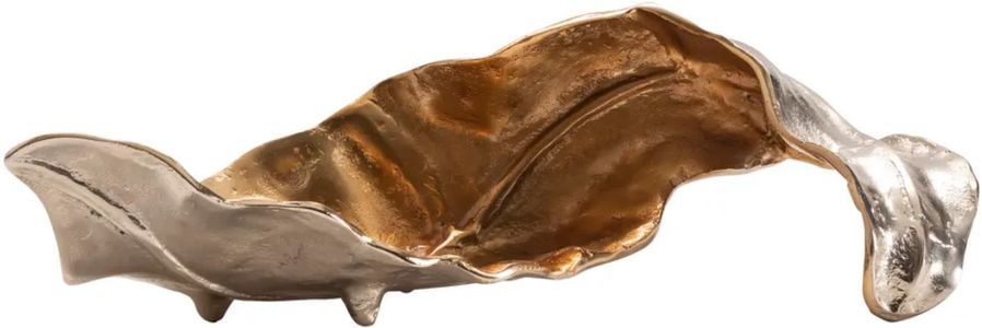 The Crestview Collection Willow Larger Two-toned Sculptural Leaf II is made from aluminum and has a silver finish on one side of the leaf and a bright brass finish on the other side. It is detailed to show the vein running through the leaf.Read More