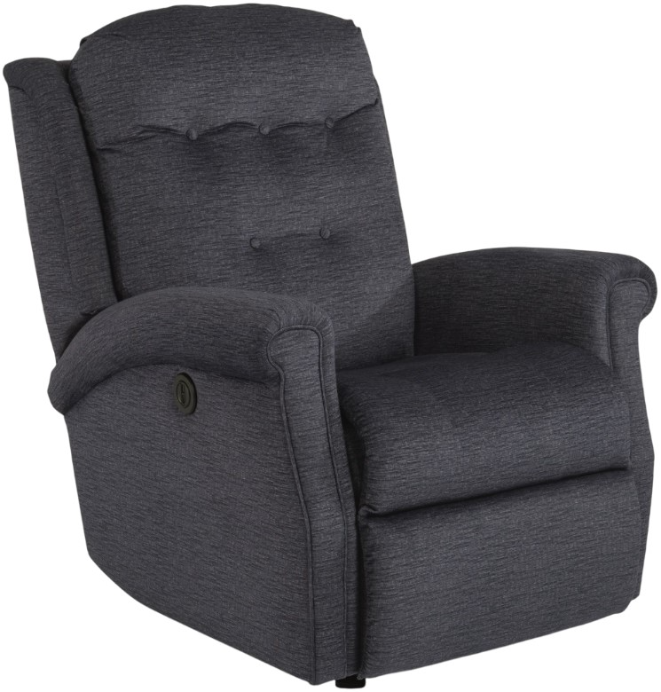 Minnie is a traditional recliner with fresh and casual features. Its set-back rounded arms are accented in the front with welt cording. The fully padded footrest and button-tufted back cushion add comfort and style to this timeless piece.Read More