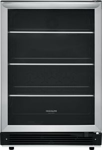 Enjoy the sleek look of a contemporary handle, stainless steel door with tinted glass window, and adjustable end-to-end glass shelving with stainless steel trim on this elegant beverage center.