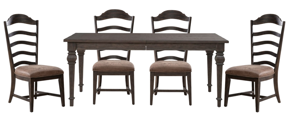 Includes the rectangular leg table and four (4) upholstered ladder back side chairs