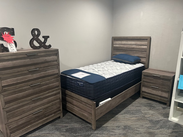 Gray set includes twin panel bed, chest of drawers, and nightstandRead More