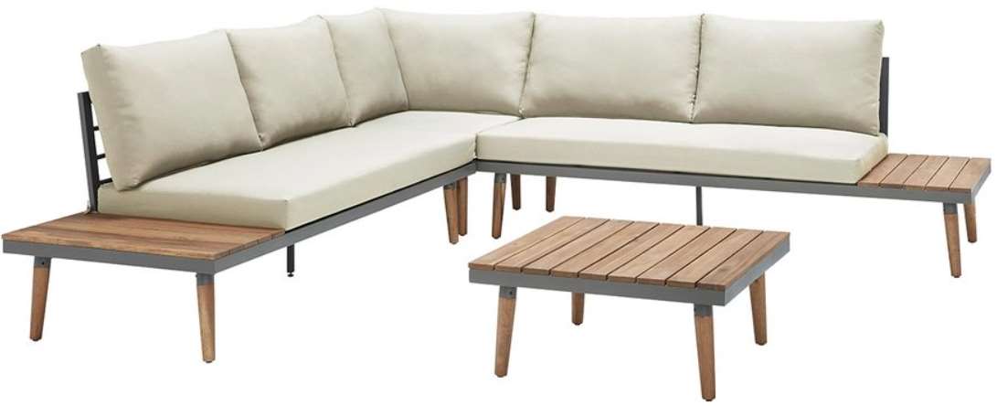 If something different than all the rest is what you’re after, try this. A mid-modern style outdoor sectional with tables. Both left and right side sofas have a built in side table that can also be used as a bench seat. A cocktail table is also included for even more function.Read More
