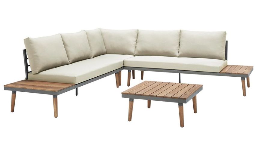 If something different than all the rest is what you’re after, try this. A mid-modern style outdoor sectional with tables. Both left & right side sofas have a built in side table that can also be used as a bench seat. A cocktail table is also included for even more function.Read More