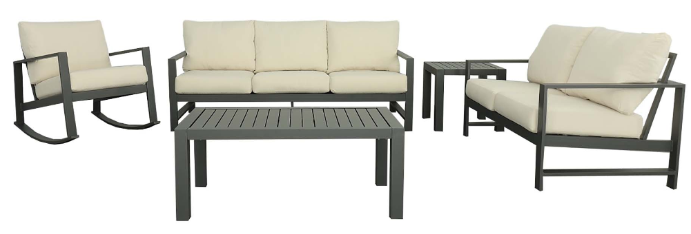 Live your best moments on the Edgewater all weather set. Whether by sea or lake, it’s the perfect place to call your sanctuary. Clean metal lines and the comfort of the cushions offer a timeless look and quality you can’t beat. Features water resistance cushions and corrosion resistance powder-coated aluminum frames.Read More