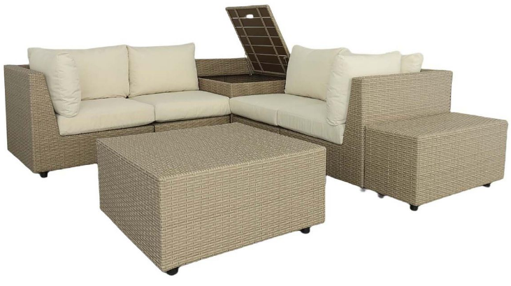 | Included In Set | Corner Chair, Armless Chair, Square Cocktail Table, Rectangular End Table, Corner Storage Table |